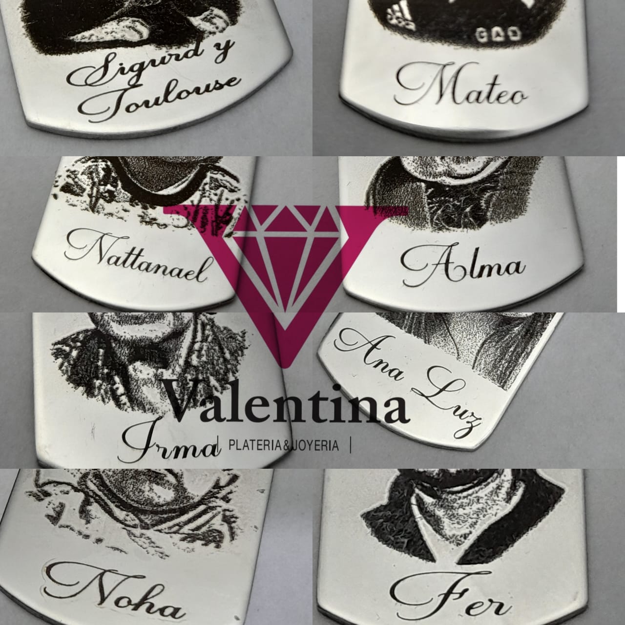 Medalla con fotografía frente y frase atrás sin costo (o fecha de calendario), cadenita de 45cms , (o accesorio de acero para llavero), boceto final impreso de recuerdo, estuche y bolsita todo listo para regalar.