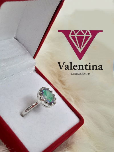 Anillo Plata 925 Corona 8x6mm Aurora boreal blanco