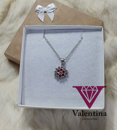 Dije Plata 925 Rodinado Oro Blanco cz roseta rojo y blanco 16mm